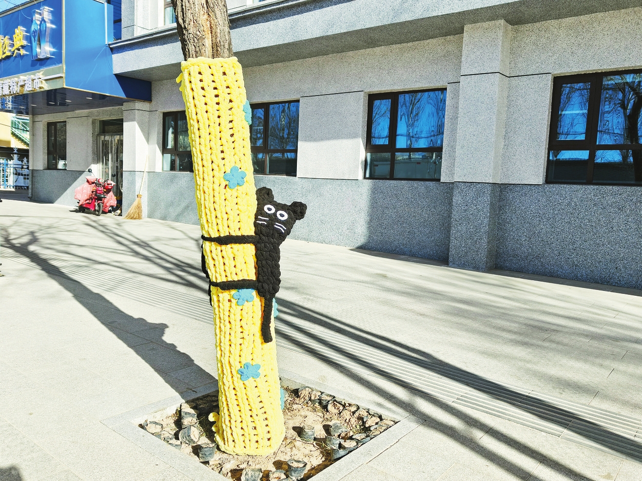 1月30日,在共和县绿洲南路东侧,人行道上的绿植穿上了定制“新衣”,为县城增添了别样生机。俏皮的卡通人物、活泼的动物造型围裹在树干上,既为树木抵挡严寒,又让树木焕发了新的生机,路过的老百姓纷纷竖起了大拇指。