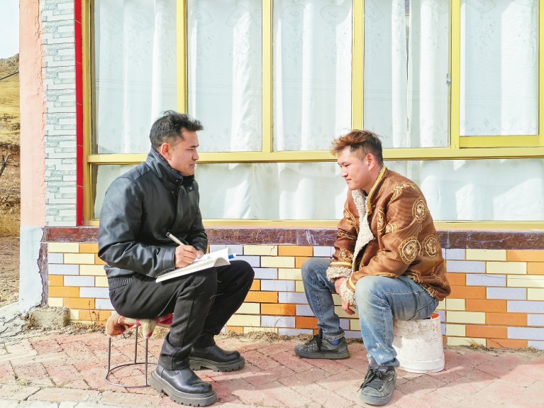 身为一名州政协委员,旦巴心里始终装着乡亲们的急难愁盼。平日里不管多忙,他都会挤出时间入户走访,把牧民的心里话一一记在小本子上。直亥买村的牧民居住分散,部分偏远牧户至今还面临通信信号弱、用电不稳定的问题;有些路段雨天泥泞难行,牧民转场、运输物资十分不便;还有牧民反映,牦牛产品销路窄,优质不优价……这些细碎的诉求,都被旦巴密密麻麻地记在日志里,晚上回到家,再逐字逐句梳理、分类,琢磨着如何在即将召开的全州两会上发声。