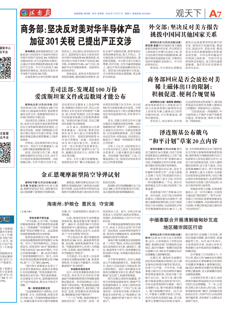 商务部:坚决反对美对华半导体产品加征301关税已提出严正交涉