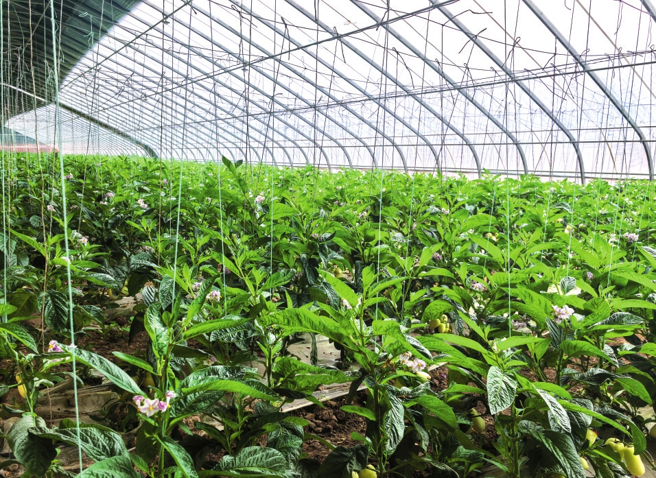 生产大棚里,瓜果蔬菜次第成熟。
