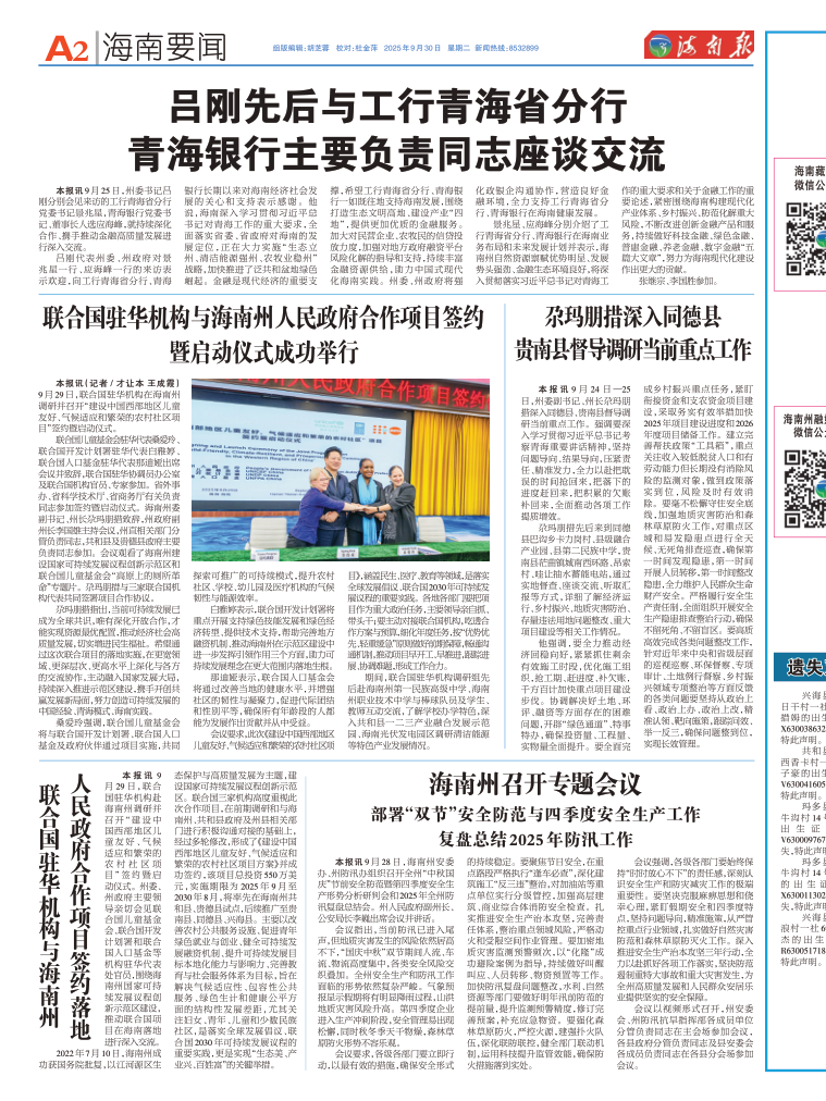 吕刚先后与工行青海省分行青海银行主要负责同志座谈交流