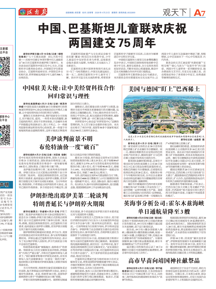 中国驻美大使:让中美经贸科技合作 回归常识与理性